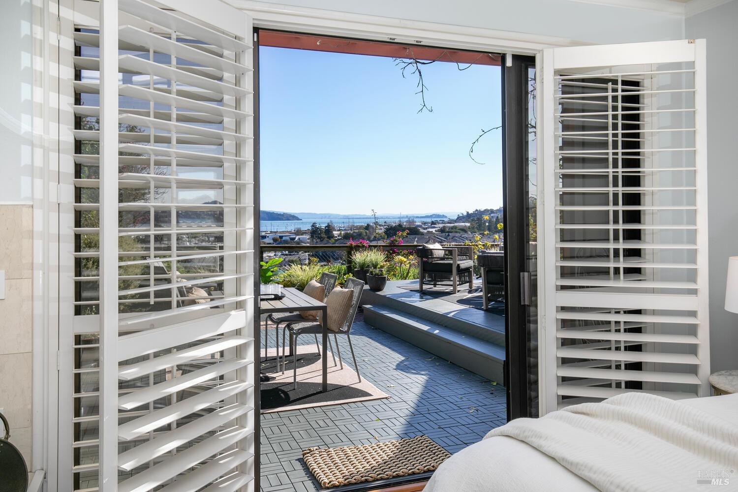 Experience coastal living in this stunning 3BD/2.5BA townhome w/panoramic views of the Bay, Belvedere & Angel Isld from every level. Enjoy hillside vistas & gorgeous sunrises. Step into soaring 2-story vaulted ceilings, a thoughtfully remodeled kitchen & a rare flat patio/yard perfect for indoor-outdoor living...one of the biggest (if not the biggest!) in the complex Attached 2 car Gar w/int access opens to street level entry. Just beyond is a romantic & private water view Primary Suite that features 2 big closets w/organizers, access to patio/yard, f/p & spacious Bath w/dual sink vanity & both walk in shower & tub. Upstairs the sunlit main living level is designed for entertaining, featuring a spacious Great Rm w/ mesmerizing water views, vaulted ceilings, 2nd f/p & outdoor balcony. Open Dining Area is accented w/elegant built-ins, while the gorgeously remodeled kitchen boasts gorgeous countertops, gas range, S/S appliances, well thought out storage features incl a cleverly designed pantry & breakfast nook. Upper flr offers privacy & versatility w/2 add'l Bdrms & 1 full bath. Back Bdrm features stunning Mt. Tam views, while loft Bdrm makes an ideal home office or creative space. Landing of this level is big enough for Peloton/exercise space or add'l office alcove & has Bay vi